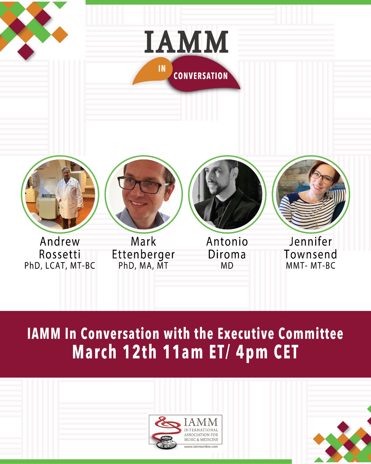 The International Association for Music and Medicine organizes an international conference every two years. In addition to that, IAMM organizes diverse events throughout the year.